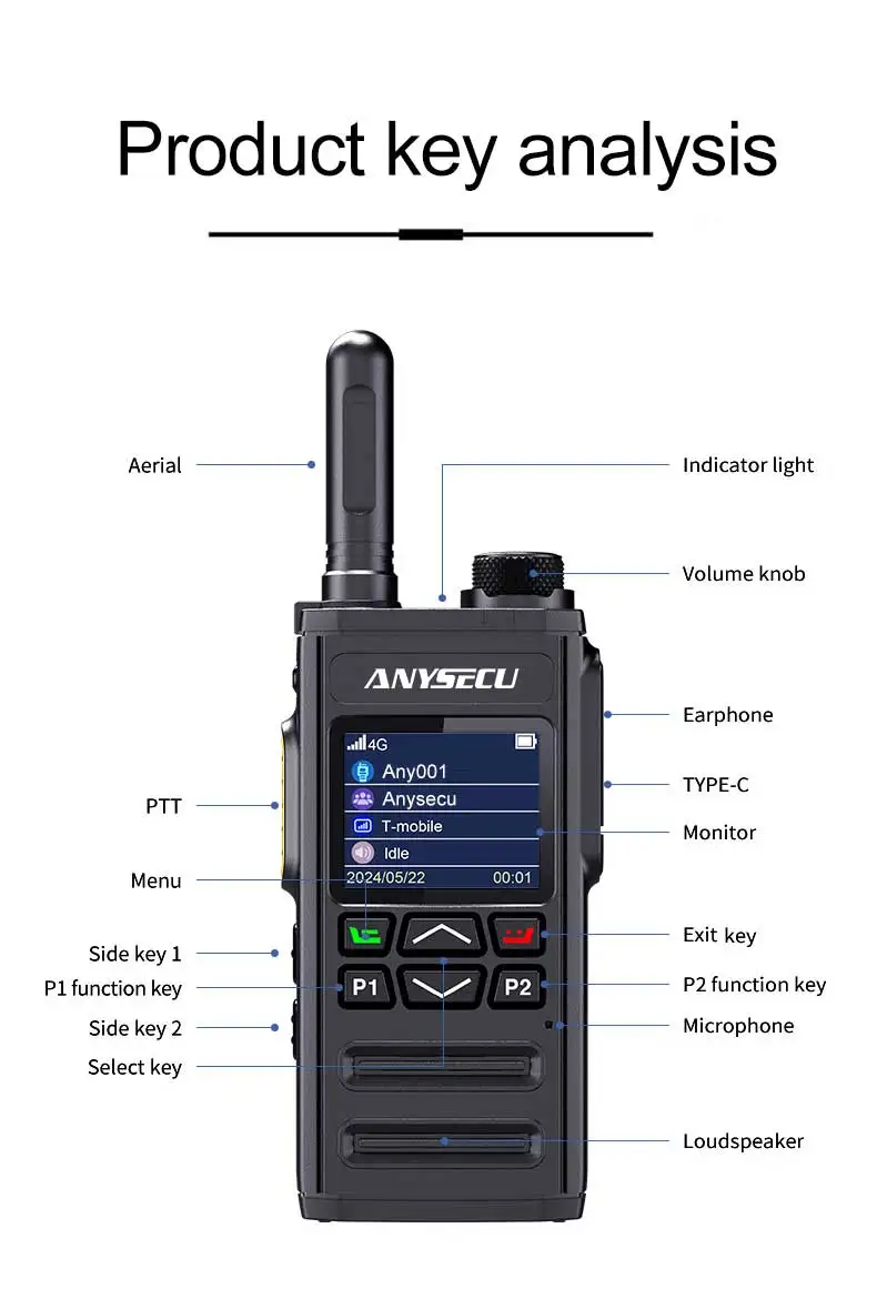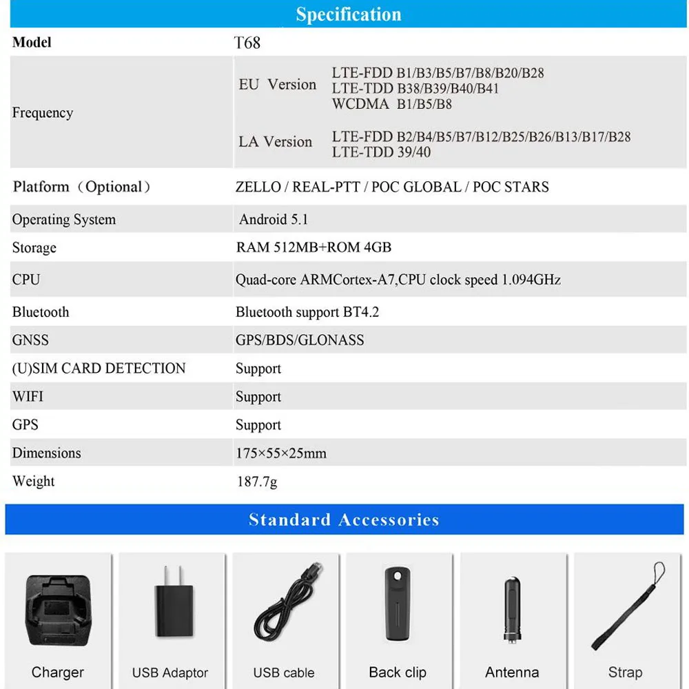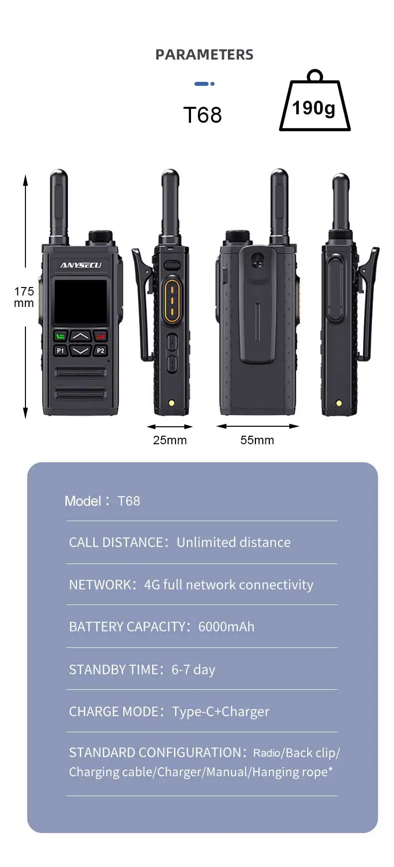 ANYSECU T68 Android 5.1 4G Network Radio With WIFI GPS POC Radio Compatible with Zello or Real-ptt or GLOBAL-PTT